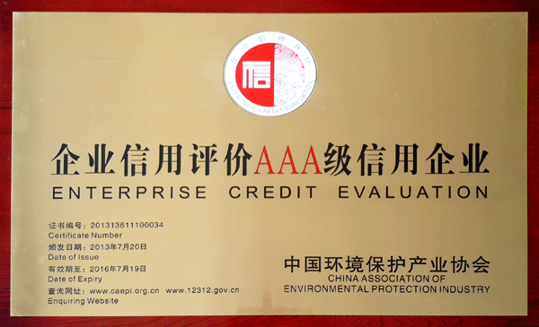 公司此次被评为“中国环境保护产业行业企业信用评价AAA级信用企业”,是对公司综合实力、财务状况、管理水平、竞争力和社会信用等诸多方面的高度肯定,为公司提高市场竞争,扩大市场份额,树立良好品牌形象积累了诚信资本。公司将不断增强企业信用意识、建立完善的企业信用制度并不断加强企业信用管理,为营造诚实守信、公平竞争的市场环境,推进行业和社会信用体系建设做出积极贡献。
